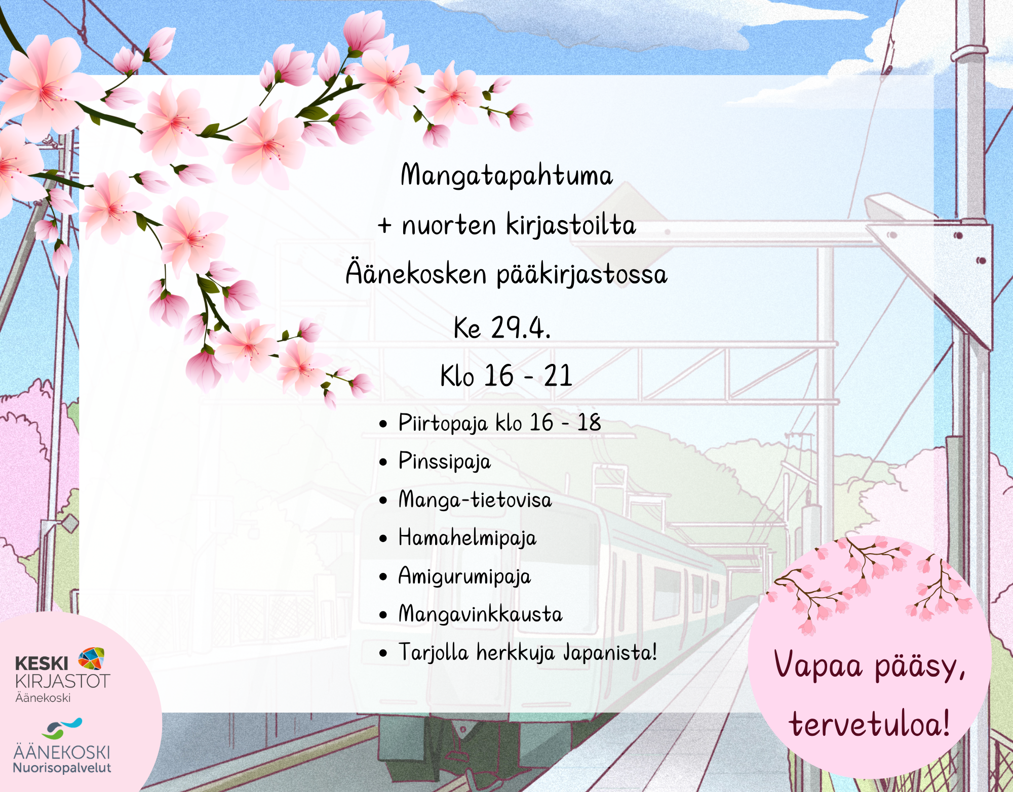 Mangatapahtuma + nuorten kirjastoilta Äänekosken pääkirjastossake 29.4. klo 16 - 21 |