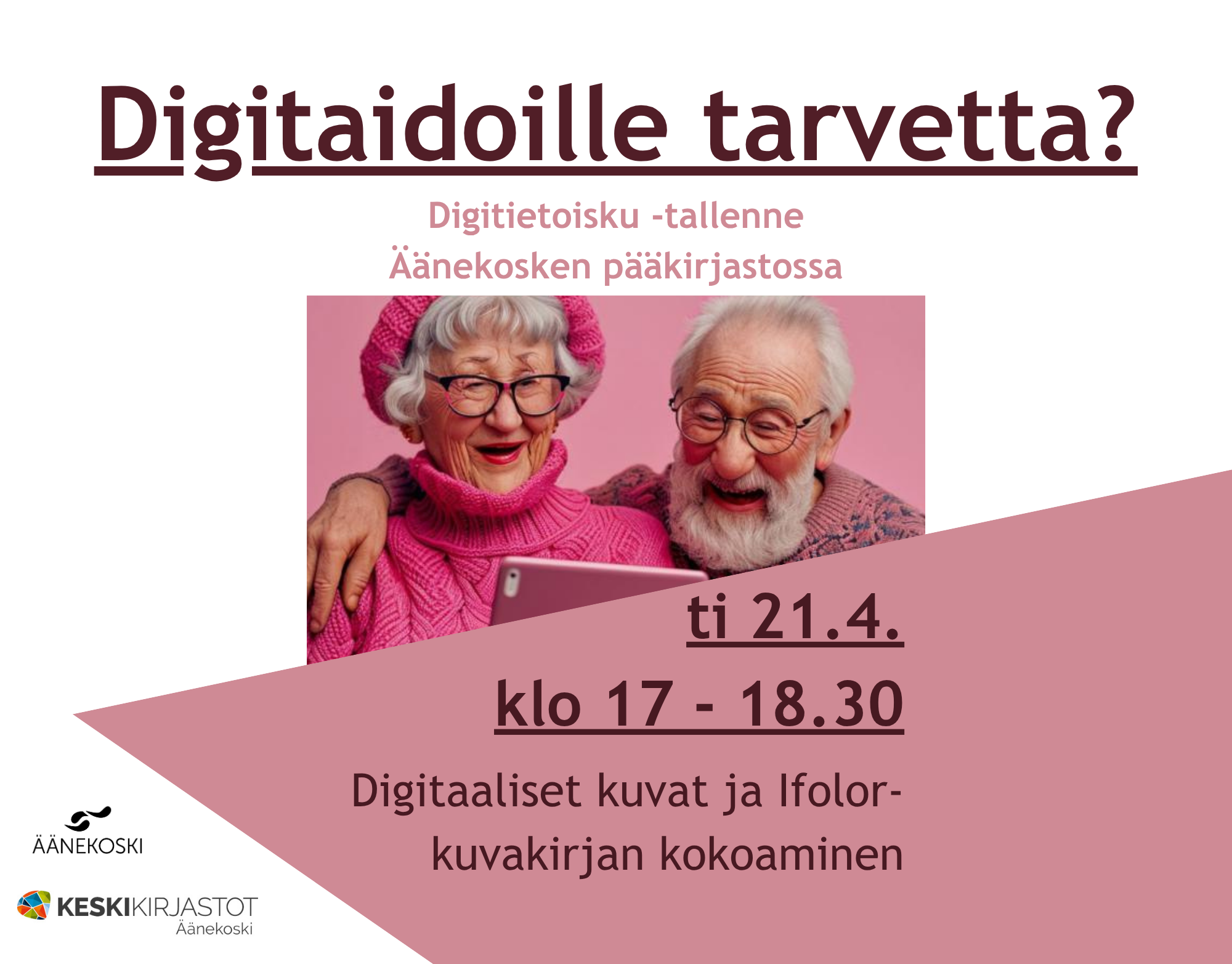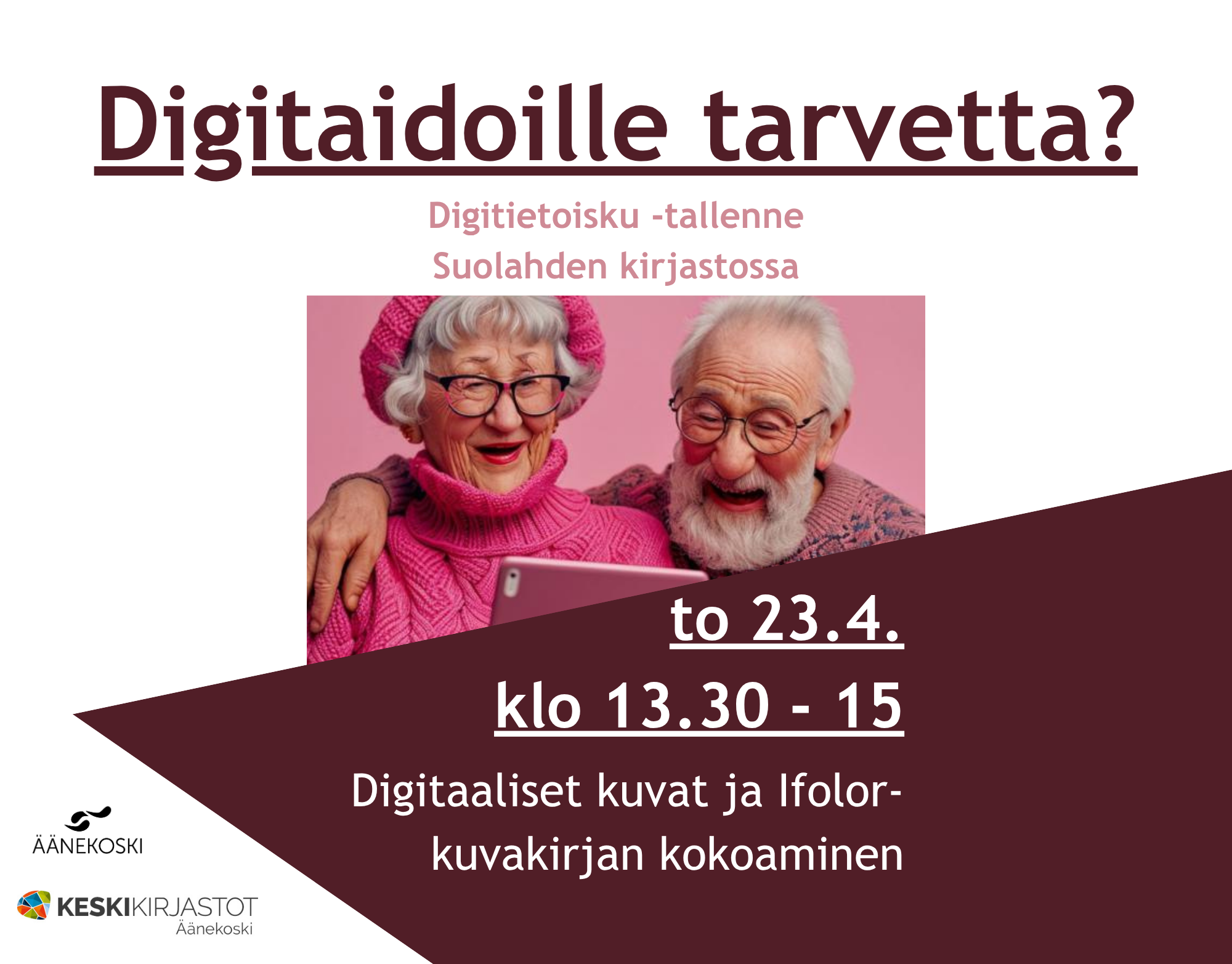 Digitietoisku -tallenne Äänekosken pääkirjastossati 21.4. klo 17 - 18.30 Aihe: Digitaaliset kuvat ja Ifolor-kuvakirjan kokoaminen |