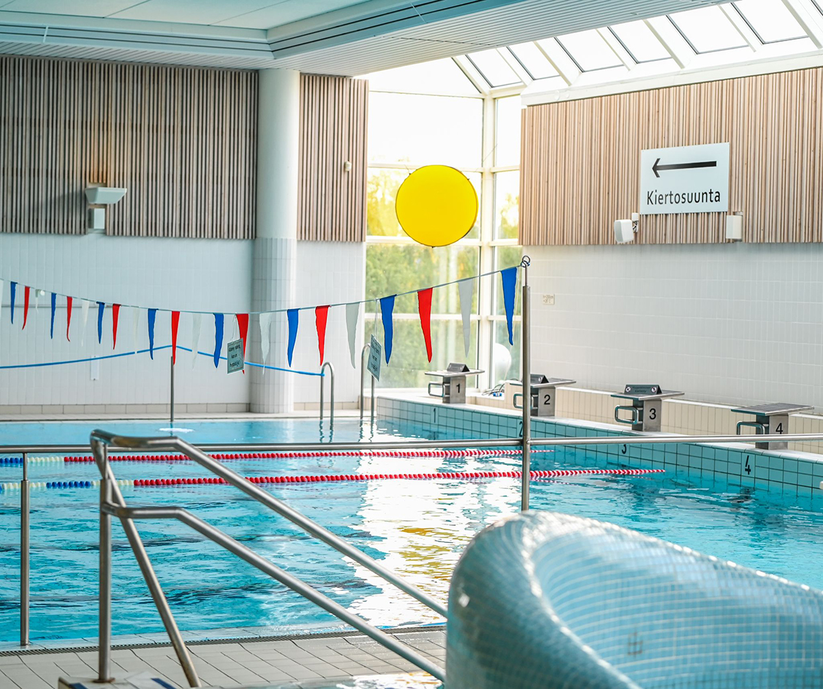 - Vesijuoksuvöitä ja -välineitä lainattavissa ilman maksua. Ohjeita henkilökunnalta.