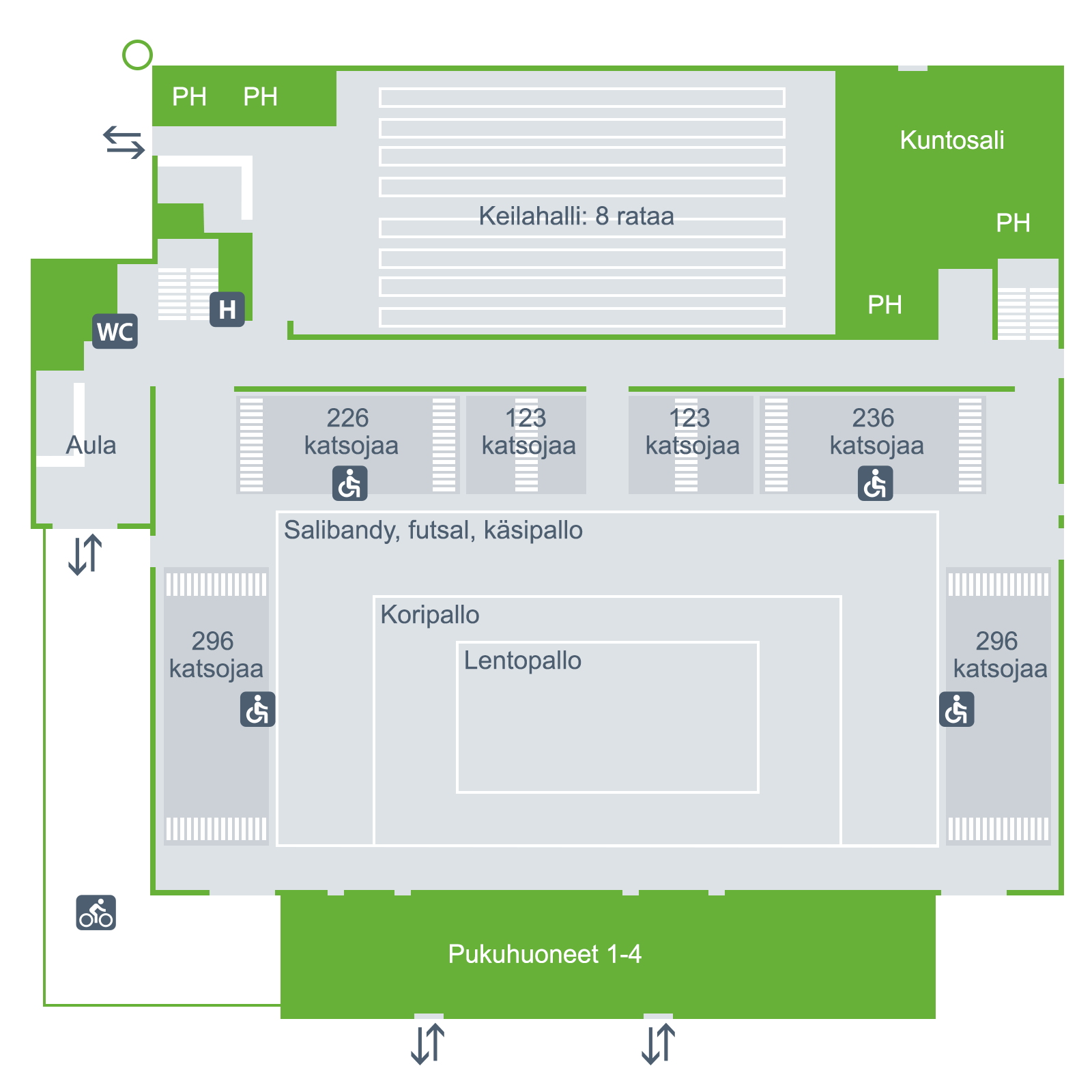 Katsomopaikkoja salissa on 1300. Ravintola- ja kokoustilat toimivat väliaikatarjoilun ohella palaveri- ja juhlatiloina ja vip-aitioita on varattavissakahdeksan kappaletta.