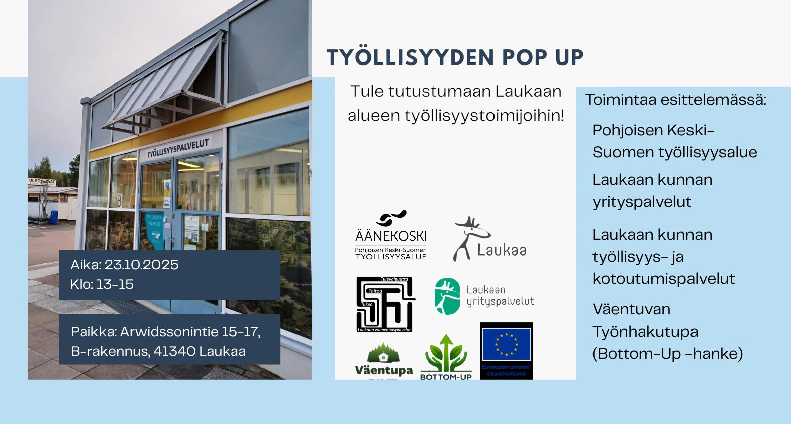 23.10. Työllisyyden pop up: Tule tutustumaan Laukaan alueen työllisyystoimijoihin