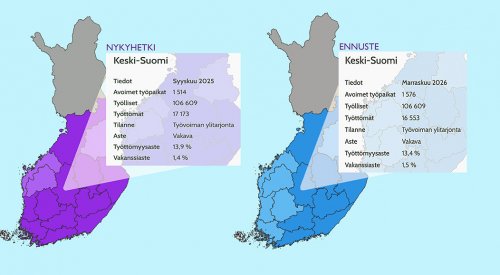 Pohjoisen Keski-Suomen työllisyysalue palvelee työnhakijoita ja työnantajia vuoden 2025 alusta. TE-toimistot sekä kuntakokeilut lakkaavat 31.12.2024. Pohjoisen Keski-Suomen työllisyysalue tarjoaa lakisääteistä työvoimapalvelua työnhakijoille ja työnantajille Äänekoskella, Hankasalmella, Kannonkoskella, Karstulassa, Kinnulassa, Kivijärvellä, Konnevedellä, Kyyjärvellä, Laukaassa, Pihtiputaalla, Saarijärvellä, Uuraisilla, Viitasaarella ja 1.1.2025 alkaen. Vuoden alussa erilaiset häiriöt, käyttökatkokset ja viivästykset palvelussa ovat mahdollisia.