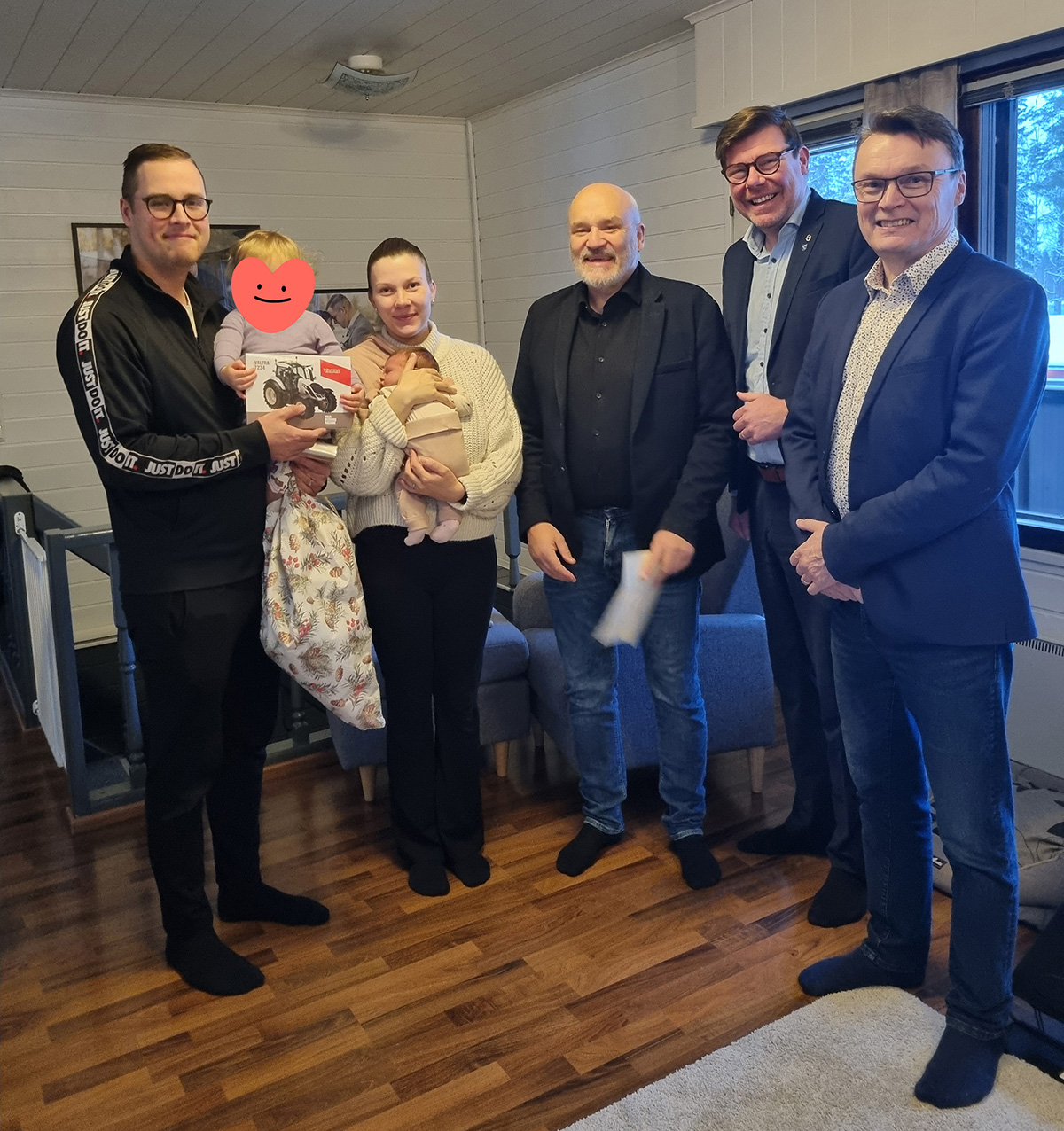 Vuoden ensimmäinen vauva on kaupungin kummilapsi ja häntä muistetaan perinteisesti kummilusikalla ja muilla lahjoilla. Kaupunginjohtaja Matti Tuononen, kaupunginhallituksen puheenjohtaja Kari Kiiskinen ja valtuuston puheenjohtaja Tommi Lunttila kävivät tänään 15.1.2026 tervehtimässä Jämsenin perhettä. Äänekosken vuoden ensimmäinen vauva syntyi 1.1. Noora ja Otto Jämsenin perheeseen ja 2-vuotias Senni on nyt isosisko. Lämpimät onnittelut koko perheelle!